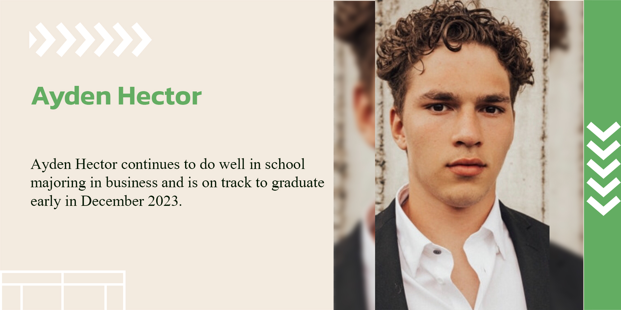 During that same period, Ayden Hector also volunteered with such organizations as Tent City, an organization supporting the local homeless community, and Relay for Life, a fundraiser hosted by the American Cancer Society.