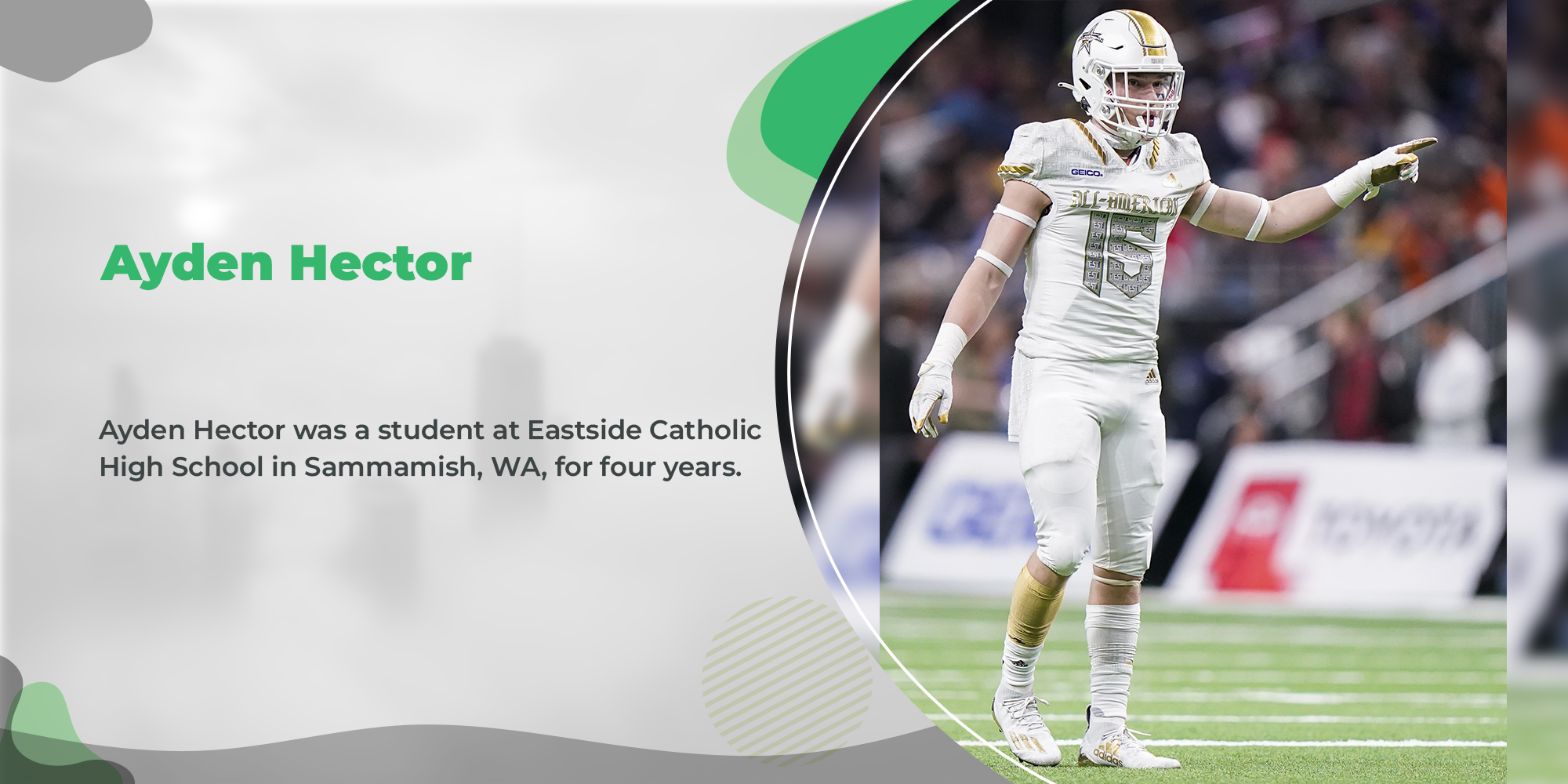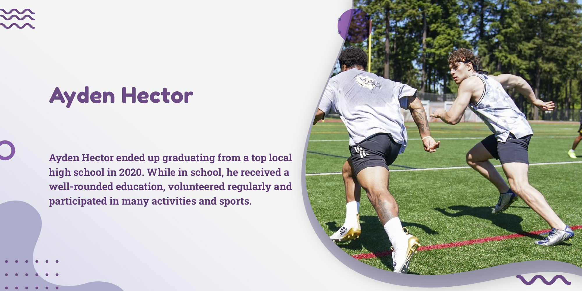 Ayden Hector is a recent high school graduate and aspiring college athlete. Hector completed a successful academic and athletic career at Eastside Catholic High School in 2020, earning numerous accolades as both student and as defensive standout on the school’s varsity football squad.